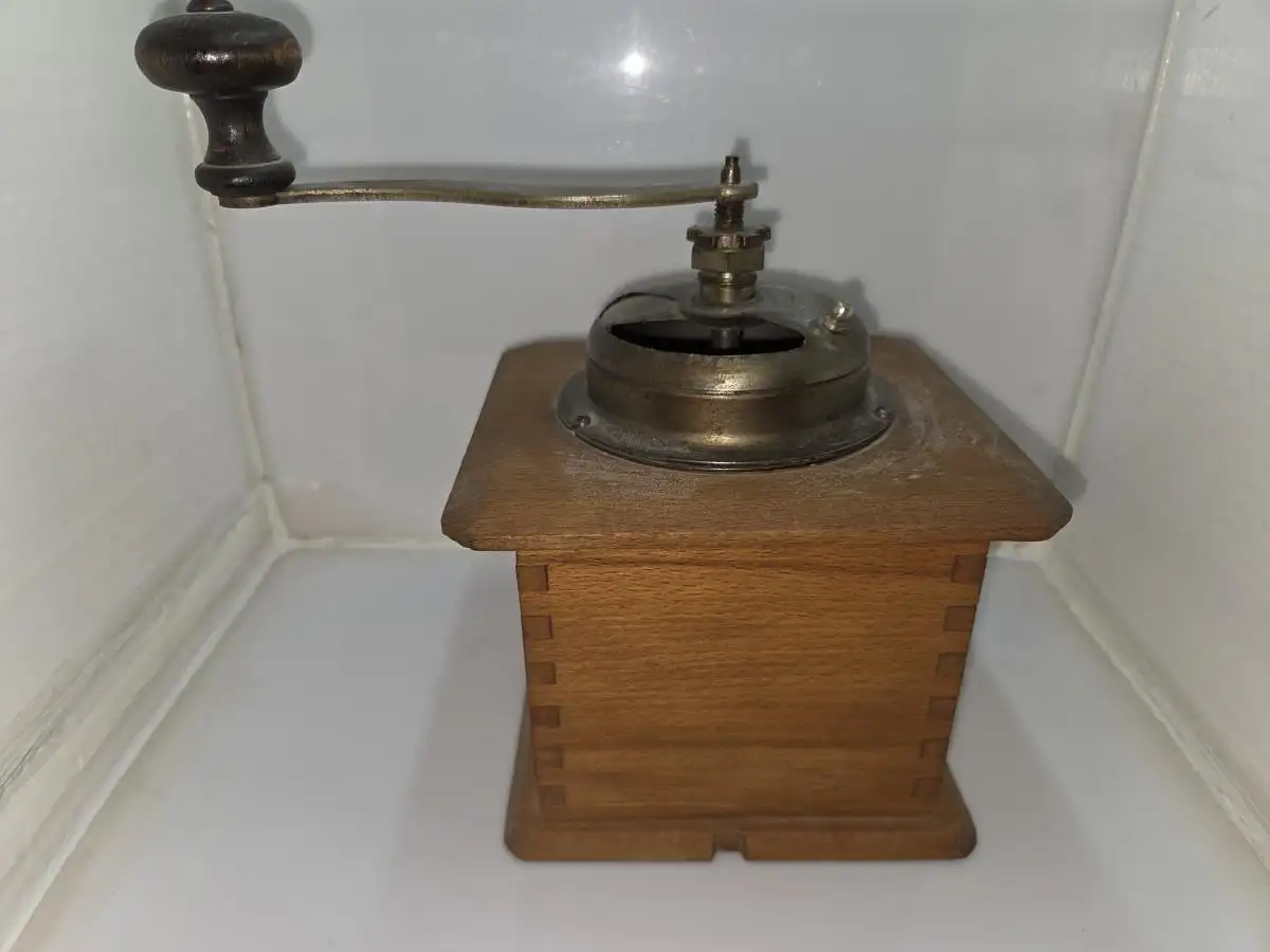 Diese antike Kaffeemühle ist ein wahres Schmuckstück für jeden Kaffeeliebhaber und verleiht Ihrer Küche einen Hauch von Nostalgie. Die klassische Mahlware aus vergangenen Zeiten besticht durch ihre filigrane Verarbeitung und das robuste Design, welches sowohl für die tägliche Nutzung als auch als dekoratives Element konzipiert wurde. Ideal für Sammler historischer Küchenutensilien oder als Geschenk, das den Empfänger zum Träumen einlädt.