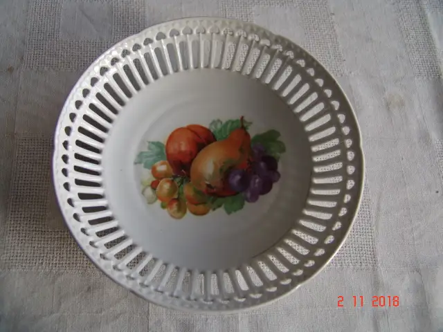 Verkauft wird eine sehr hübsche Porzellanschale mit durchbrochenem Rand und Obstdekor.