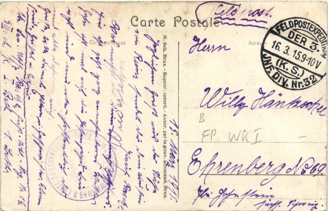 Antwerpen - Transport deutscher Truppen - Feldpost 3. Inf. Division Nr. 32 -470938