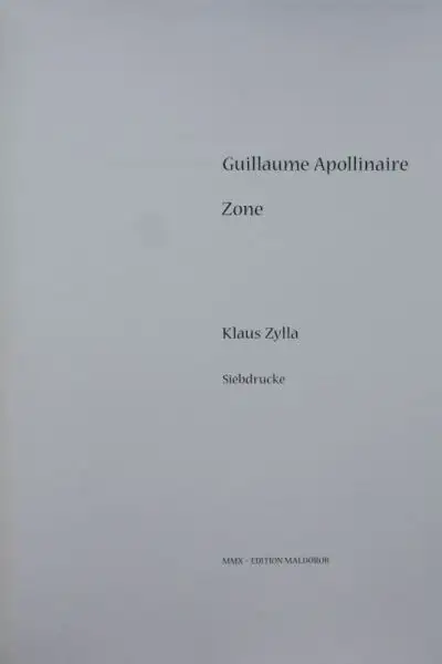 12 unbag. Bl. mit 4 signierten Original-Grafiken. Original Pappband im Schuber. Format: 42 x 30 cm. Von Klaus Zylla und Übersetzer Klaus Klünner signiert und nummeriert. - Schönes Exemlar in der Vorzugsausgabe mit handbemalten Einband von Klaus Zylla. Neupreis: 625 Euro.
