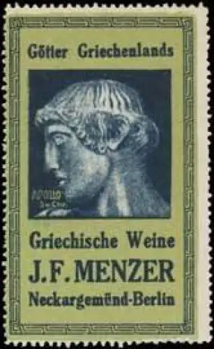 Götter Griechenlands, Griechische Weine, Größe/Zustand: 7x4 , guter Zustand, Original alte Reklamemarke die seinerzeit für die Werbung benutzt wurde