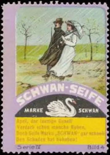 \"verdarb schon manche Roben, doch Seife Marke \"\"Schwan\"\" ganz schnell, den Schaden hat behoben. Serie IV, Bild 4\", Größe/Zustand: 5x4 , guter Zustand, Original alte Reklamemarke die seinerzeit für die Werbung benutzt wurde