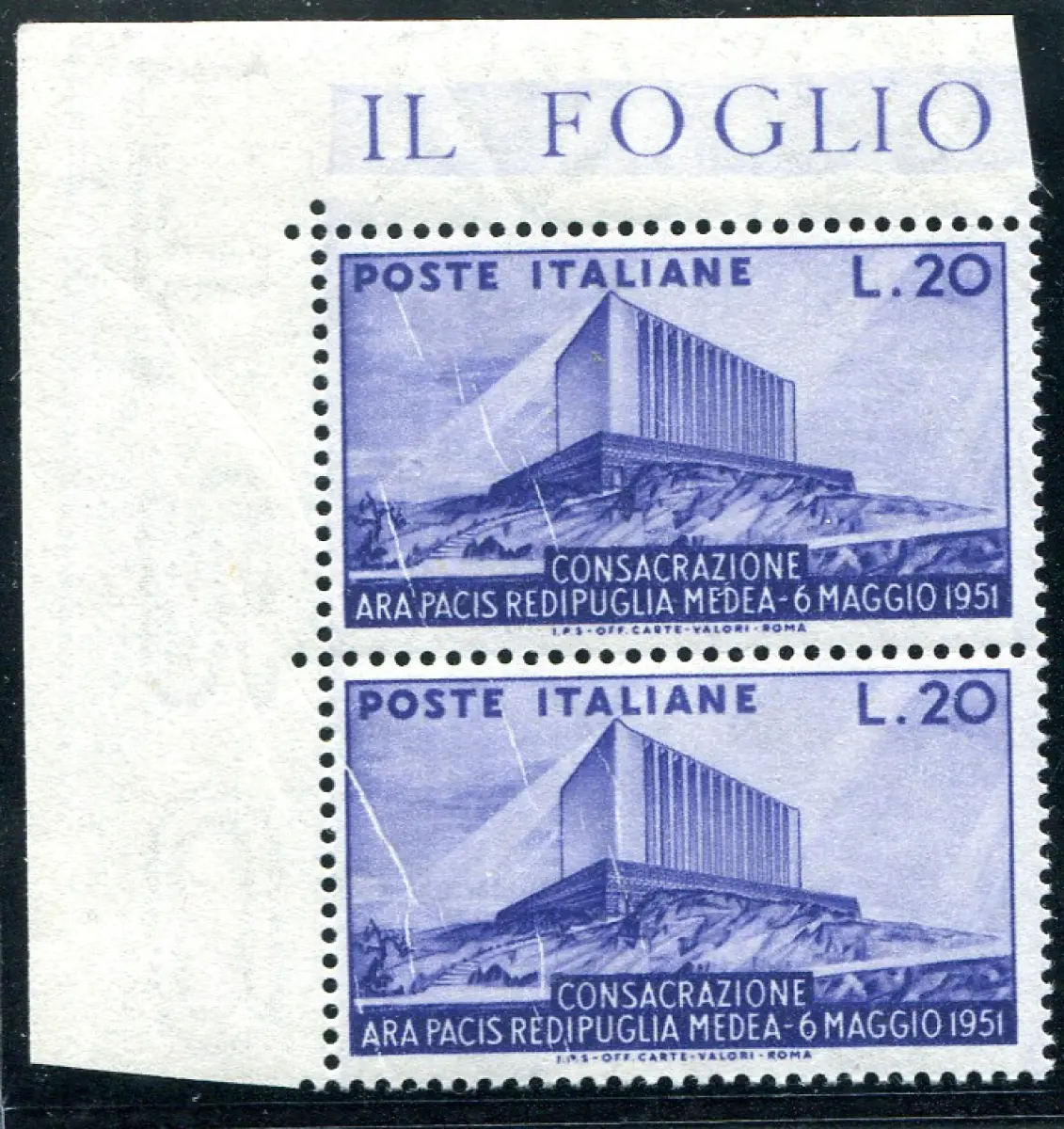 Ara Pacis Sorte Papierfalten Vollgummi - Ara Pacis Nr. 656 vertikales Paar a. von f. mit feinen aber deutlichen Papierfalten beim Drucken - ungewöhnliche gelegentliche Sorte Code 458/8