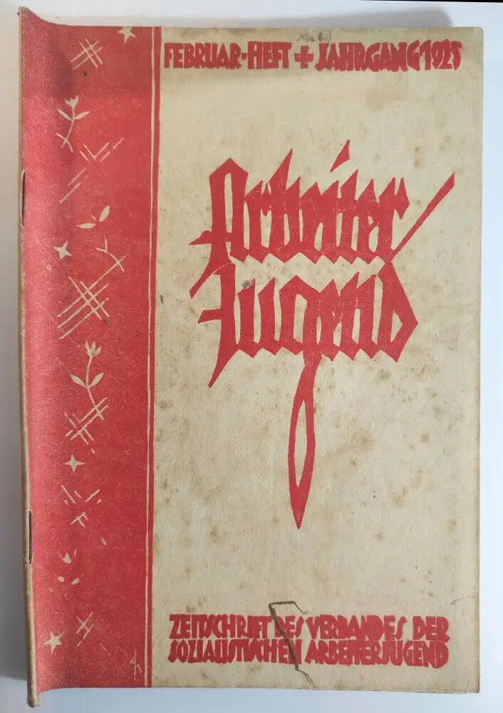 Originales Heft"Arbeiter Jugend Zeitschrift des Verbandes der sozialistischen Arbeiterjugend, Format A5. Erhaltung: Stockflecken vorhanden, an der Seite gebogen, beschriftet, leichter Einriss, Knicke, alles weitere siehe bitte Fotos.