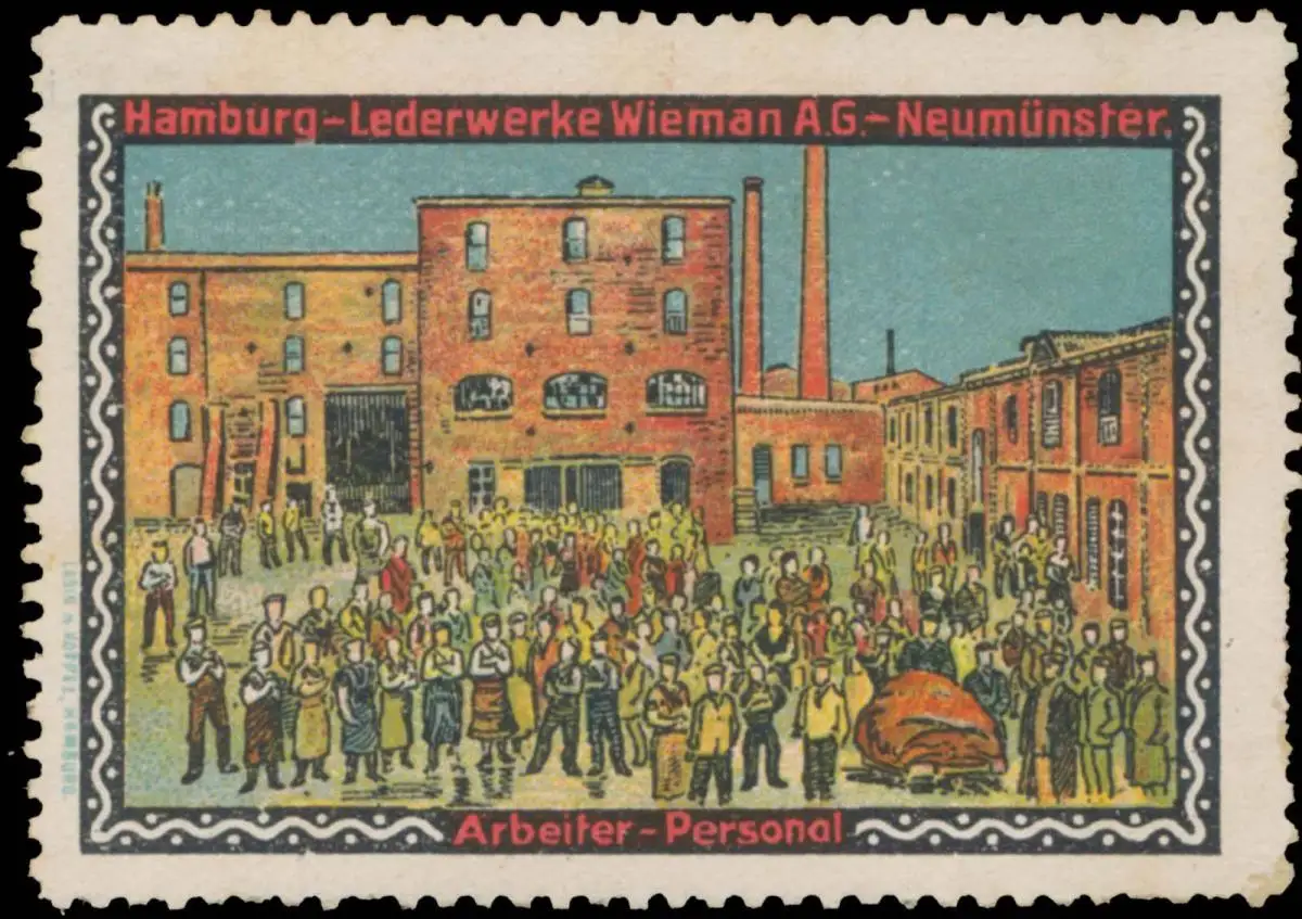 Fabrikansicht, Hamburg, Neumünster, Größe/Zustand: 4x6 , guter Zustand, Original alte Reklamemarke die seinerzeit für die Werbung benutzt wurde