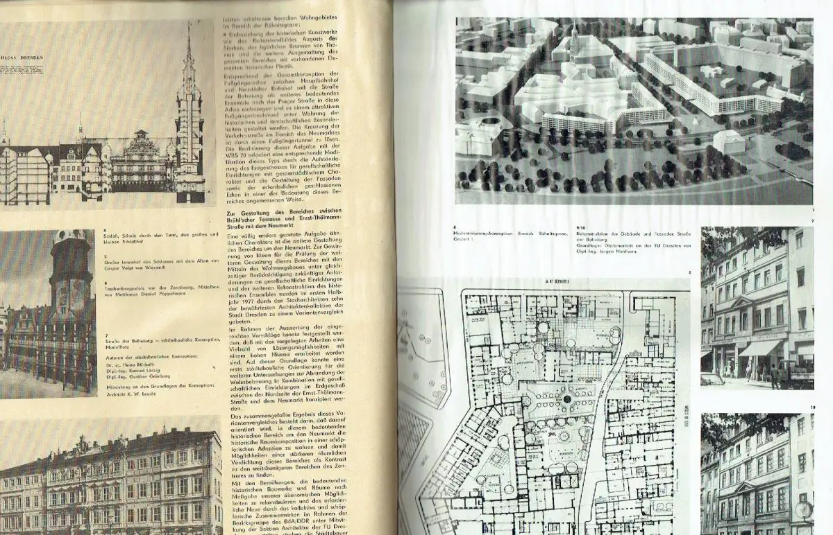 guter Zustand, Gebrauchs- und Alterungsspuren: Umschlag teils mit kleinen Blessuren an Ecken und Kanten - Seiten sauber und ordentlich, aber Heft mehr oder weniger wellig, Thema Dresden insg. 29 Seiten - Notizen - Städtebau und Architektur im Bezirk Dresden - Die Gestaltung weiterer Bereiche im kulturhistorischen Zentrum von Dresden (5 Seiten)  - Zum Wiederaufbau der Semperoper - Komplexer Wohnungsbau in Dresden - Zur Gestaltungskonzeption der Straße der Befreiung in Dresden - Wiederaufbau des Blockhauses in Dresden als Wohngebietsgaststätte und Haus der DSF - Aus der Arbeit des Instituts für Denkmalpflege zur weiteren Gestaltung der Stadt Dresden - Modernisierungskomplex Dresden-Friedrichstadt - Wettbewerb zur Umgestaltung der Äußeren Neustadt in Dresden (3 Seiten) - Erhaltung und Umgestaltung der historischen Altstadt in Görlitz (3 Seiten) - Städtebaulicher Ideenwettbewerb „Kommunikationsachse Görlitz-Zgorzelec" (4 Seiten) - Altstadt Bautzen (3 Seiten) - Wohngebiet „Dr.-Salvador-Allende-Straße" in Bautzen - Zur Einbeziehung der bildenden Kunst in die Gestaltung der neuen Wohngebiete von Dresden - Experimentalbau „Zwölfeckhaus" - Die Anwendung des Bausteinprinzips im Gesellschaftsbau im Bezirk Dresden - Landschaftsarchitektur — Grundsätze, Zielstellungen und Ergebnisse bei der Gestaltung der Umwelt (4 Seiten) - Zur Arbeit der Industriearchitektur im Bezirk Dresden - Informationen, kartoniert, ca. 23 x 31, 64 Seiten mit zahlreichen Bildern