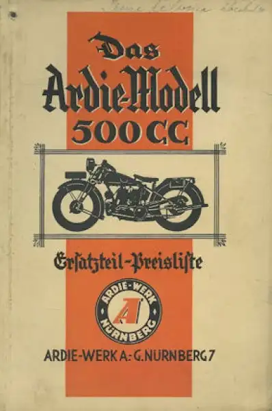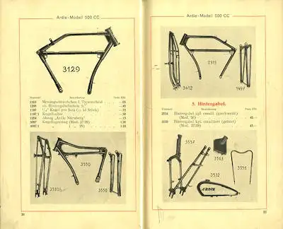 Ardie Modell 500 c.c. / SV Ersatzteilliste 3.1929