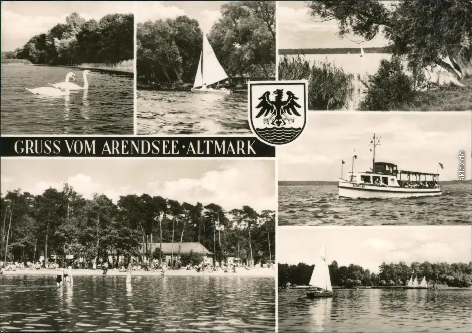 Arendsee (Altmark) Schwäne, Segelboote, Uferbereich, Fähre, Strand 1970