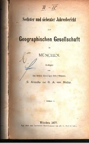 Jahresbericht; geographische Gesellschaft in München; C. Arendt; G.A. Huller; Königliche Hof- und Universitätsdruckerei; München; Geschichte