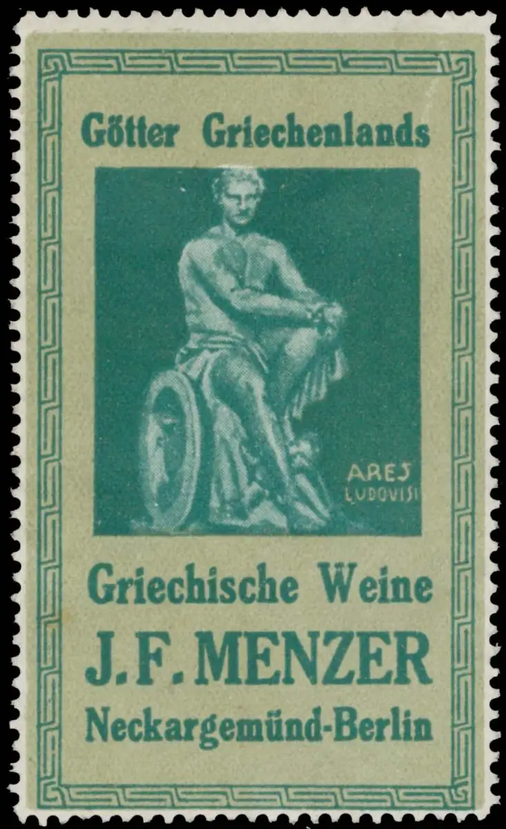 Götter Griechenlands, Griechische Weine, Größe/Zustand: 7x4 , guter Zustand, Original alte Reklamemarke die seinerzeit für die Werbung benutzt wurde