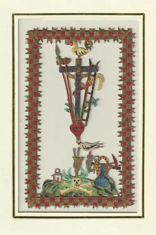 o. O. [19. Jahrhundert]. Collage aus Papierapplikationen. 11 x 6,5 cm (Gesamtgr.). Unter Passepartout. Gut erhalten.