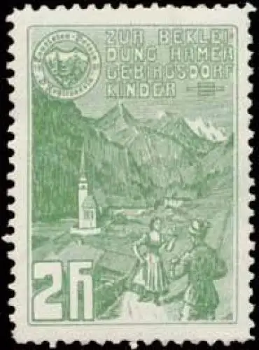 Spendenmarke zur Bekleidung armer Gebirgsdorfkinder, Größe/Zustand: 4x3 , guter Zustand, Original alte Reklamemarke die seinerzeit für die Werbung benutzt wurde