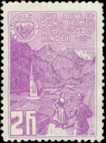 Spendenmarke zur Bekleidung armer Gebirgsdorfkinder, Größe/Zustand: 4x3 , guter Zustand, Original alte Reklamemarke die seinerzeit für die Werbung benutzt wurde