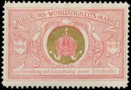 Jubiläums-Wohltätigkeitsmarke zur Bekleidung und Ausspeisung armer Schulkinder, Armut, Größe/Zustand: 3x4 , guter Zustand, Original alte Reklamemarke die seinerzeit für die Werbung benutzt wurde