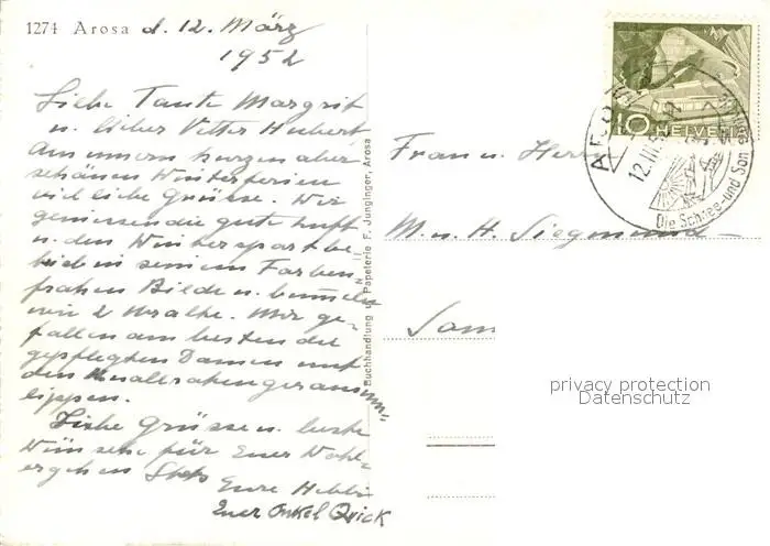 Arosa_GR Winterlandschaft Arosa_GR postalisch gelaufen 1952 Erhaltung siehe scans [KathaD81] Kathoren