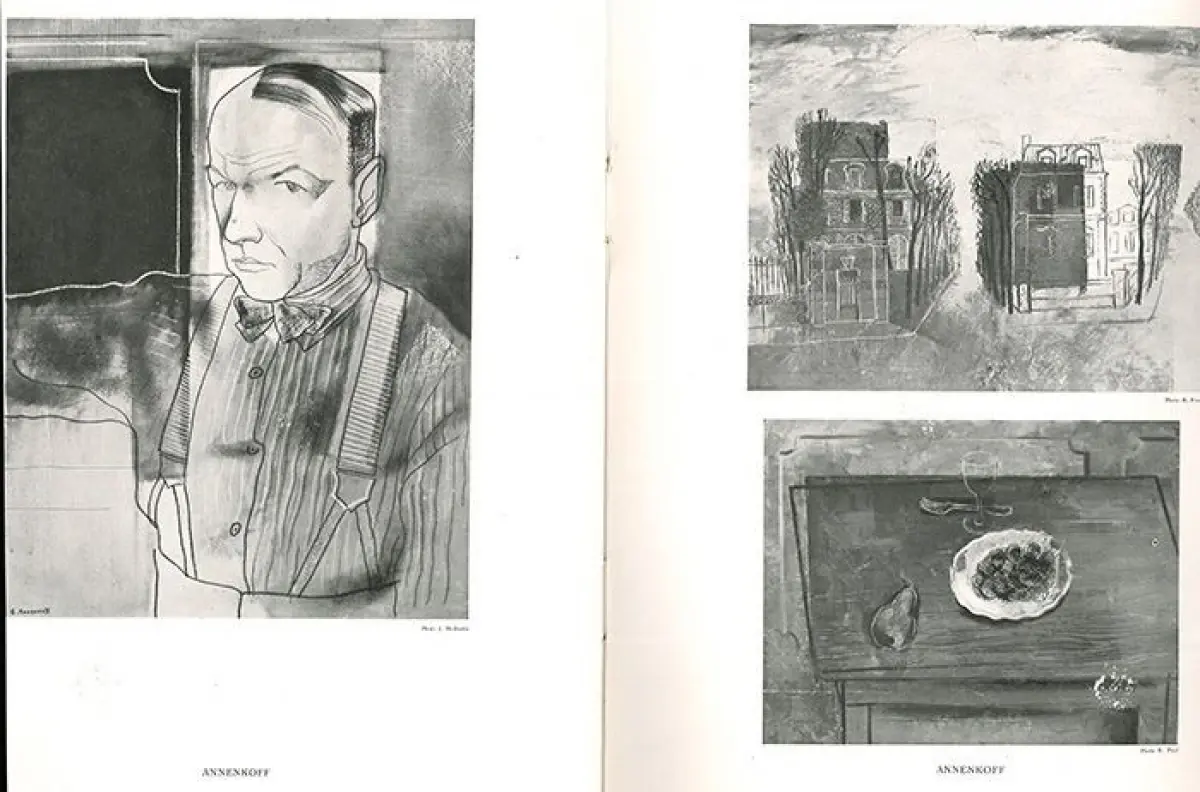 Bemerkungen: Die Abb. zeigen Arbeiten von: Adlen, Altmann, Andreenko, Androussoff, Annenkoff, Arapoff, Barthe, Chagall, Deyneka, Epstein, Exter, Favorsky, Feder, Fotinsky, Gloutchenko, Gontcharova, N. Granovsky,Indenbaum, Jacouloff, Kakabadze, Kikoine, Kravtchenko, Kremegne, Larionoff, W. Lebedeff, Lipchitz, Loutchansky, Mané-Katz, Mitchine, Niwinsky, Orloff, Popova, Pougni, Rabinovitch, Soutine, Sterling, Sternberg, Terechkovitch, Williams, Zadkine. André Salmon (1881-1969), der für dass hier vorliegende Werk das Vorwort verfasste, war Lyriker, Romancier und Kunstkritiker. Er war einer der Fürsprecher für die neue Kunstrichtung des Kubismus, zusammen mit Apollinaire und Maurice Raynal. Während der Jahre 1897 bis 1902 lebte er in Sankt Petersburg (Russland) zusammen mit seinen Eltern. Wieder in Paris, traf er den jungen, noch unbekannten Schriftsteller Guillaume Apollinaire, und gründete zusammen mit ihm und anderen jungen Künstlern eine Künstlergruppe. 1904 zog er in das Atelierhaus Bateau-Lavoir, in dem Picasso, Max Jacob, Kees van Dongen, Apollinaire und andere Künstler wohnten. Amedeo Modigliani und Jean Cocteau gehörten zu seinem Freundeskreis. Salmon gilt als einer der jungen Kunstkritiker, die den Berufsstand neu definierten. Nicht bloße Berichterstattung über Salonausstellung war sein Anliegen, `sondern die ästhetische Reflexion und historische Wertung mischten sich zusehend in sein kritisches Urteil` Salmon machte, neben Carl Einstein, Max Jacob und Maurice Raynal, in zahlreichen Ausstellungskritiken und Schriften auf die Kunst des Kubismus aufmerksam und versuchte, die Gemälde von Pablo Picasso, Fernand Léger, Juan Gris und Georges Braque einem skeptischen Publikum näherzubringen.
