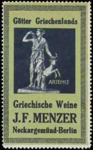 Griechische Weine, Serie: Götter Griechenlands, Größe/Zustand: 7x4 , guter Zustand, Original alte Reklamemarke die seinerzeit für die Werbung benutzt wurde