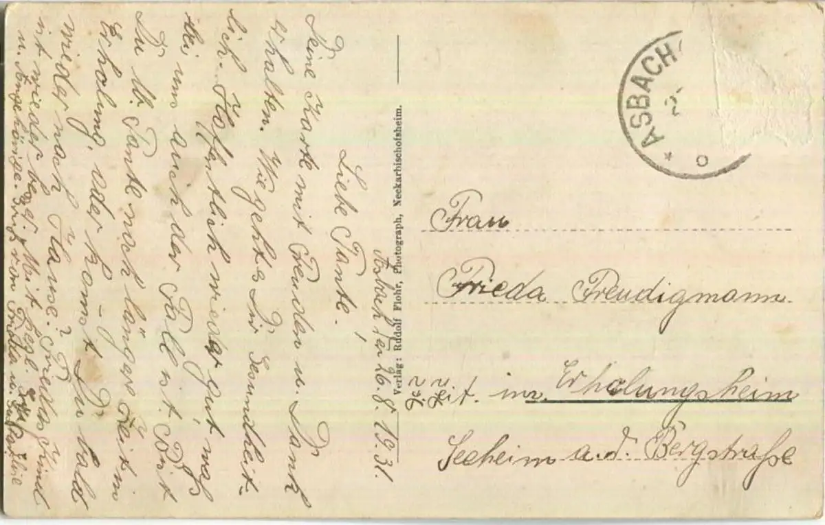 Asbach - Verlag Rudolf Flohr Neckarbischofsheim - Gebrauchsspuren - Marke abgerissen (G1916) gel. 1931