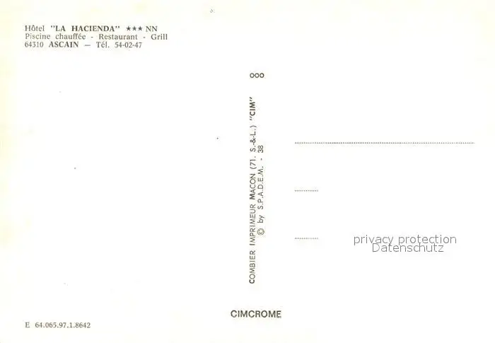 Ascain Hôtel La Hacienda vue aérienne Ascain postalisch nicht gelaufen nach 1965 Erhaltung siehe scans [FriedD77] Frierer