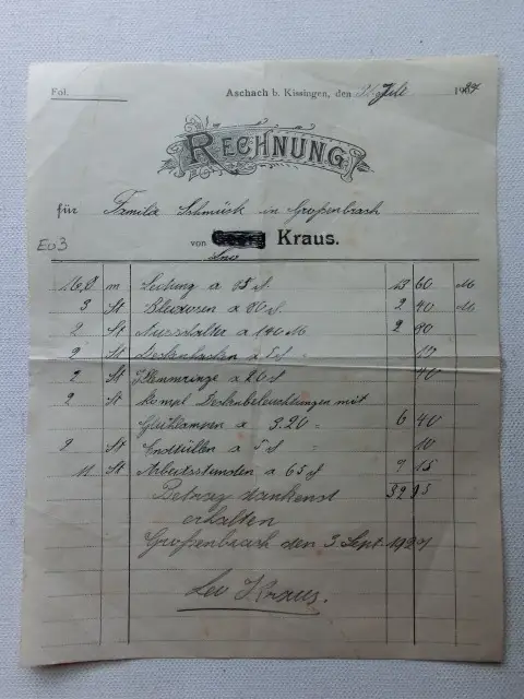 Aschbach b. Bad Kissingen Alte Rechnung Dokument [aT716]