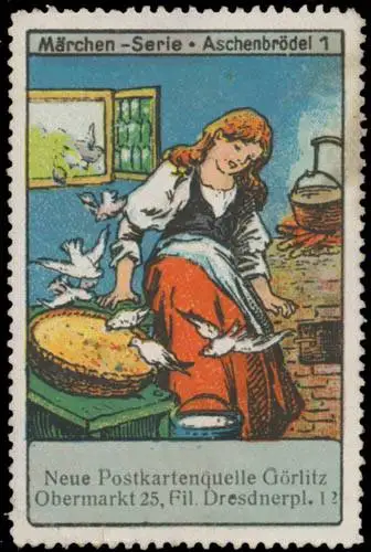 Märchen-Serie. Neue Postkartenquelle in Görlitz, Bruno Hanzig, Ansichtskarten und Schreibwaren, Obermarkt 25, Filiale: Dresdner Platz 12. Taube, Größe/Zustand: 6x4 , guter Zustand, Original alte Reklamemarke die seinerzeit für die Werbung benutzt wurde