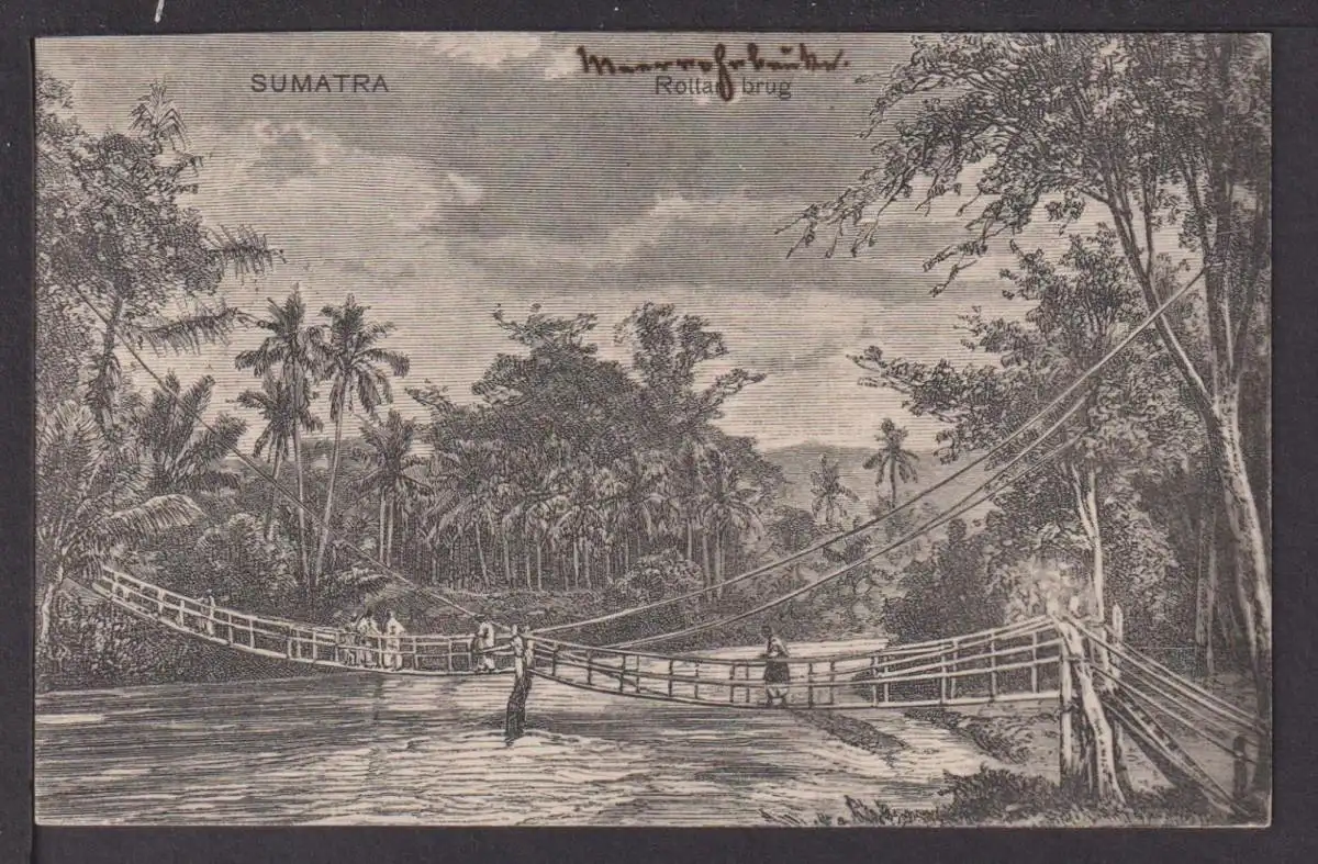 Asien Sumatra Rottan Brücke Aufdruck Java Weltevreden Niederlande Niederländisch