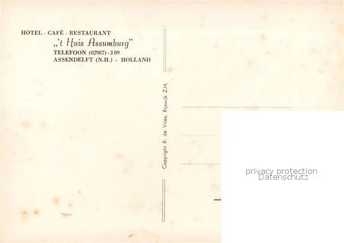 Assendelft Hotel Restaurant t Huis Assumburg Assendelft postalisch nicht gelaufen 1921-1965 Erhaltung siehe scans [WerneD78] WernPID7
