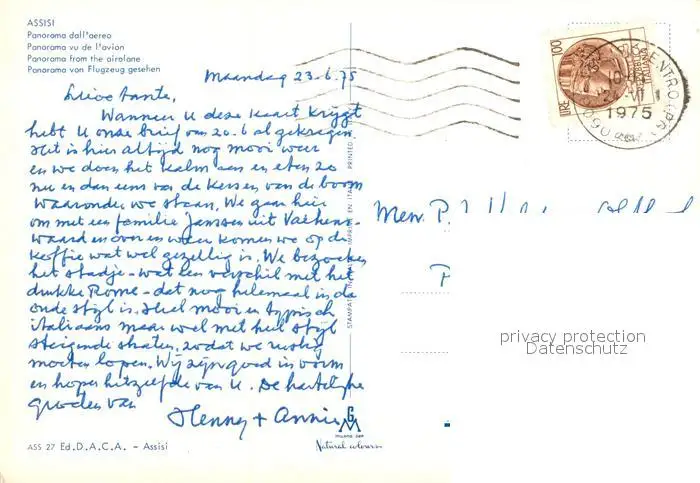 Assisi_Umbria Fliegeraufnahme Assisi Umbria postalisch gelaufen 1975 Erhaltung siehe scans [WerneD78] WernPID7