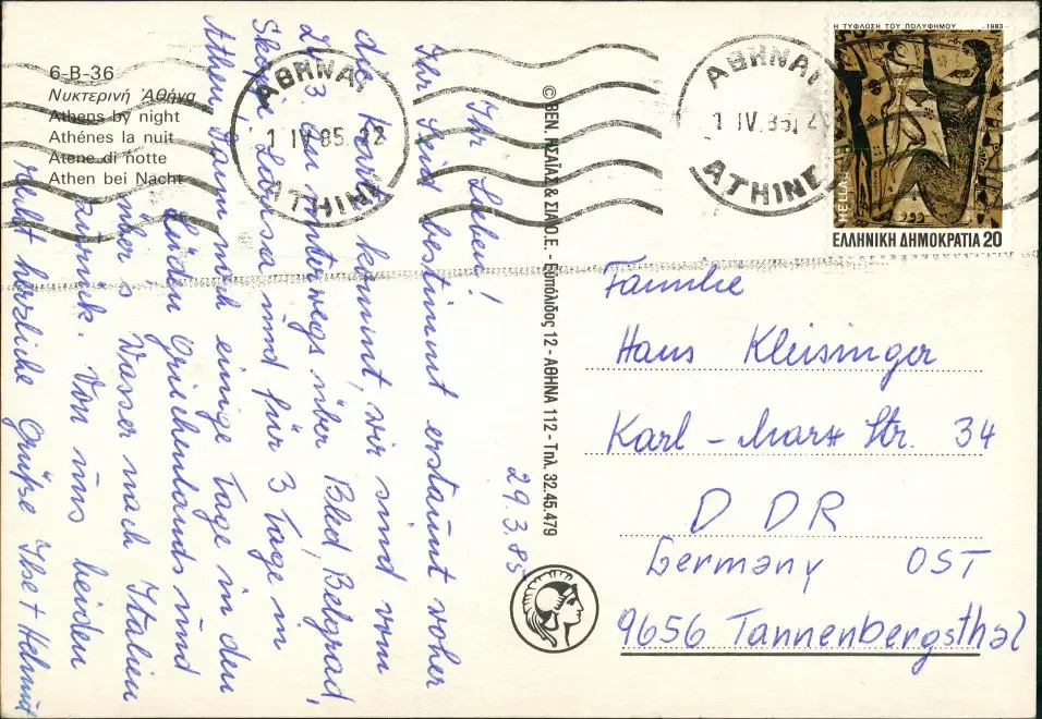 Athen Αθήνα Stadtteilansichten 4 Photos by night, Akropolis u.a. 1985