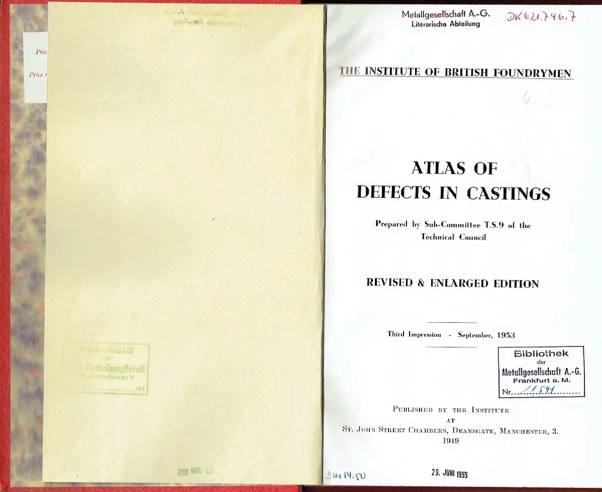 Atlas of Defects in Castings Prepared by Sub-Committee T.S.9 of the Technical Council.