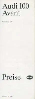 Audi 100 Avant C 4 Preisliste 10.1992