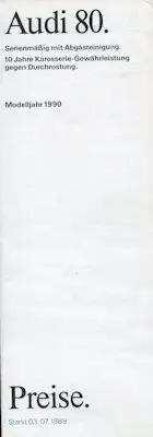 Audi 80 B 3 Preisliste 7.1989