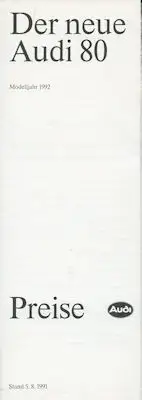 Audi 80 B 4 Preisliste 5.8.1991