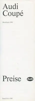 Audi Coupé B 3 Preisliste 8.1991