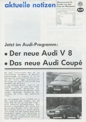 Audi Coupé B 3 / V 8 Interne Informationen 11.1988