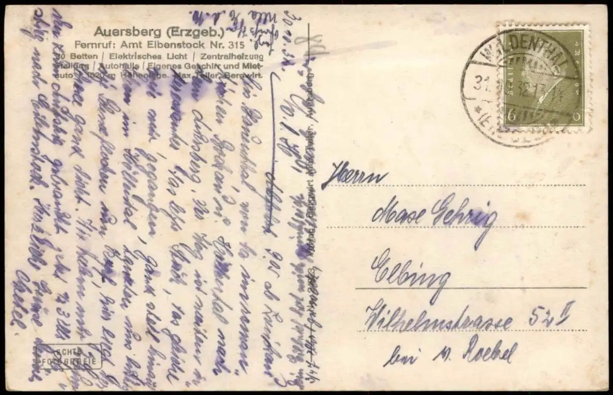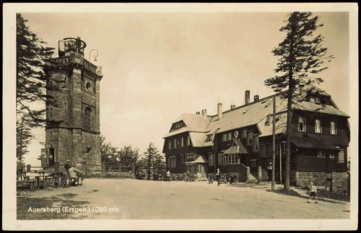 Auersberg (Erzgebirge) Berghotel Auersberg mit Aussichtsturm 1932