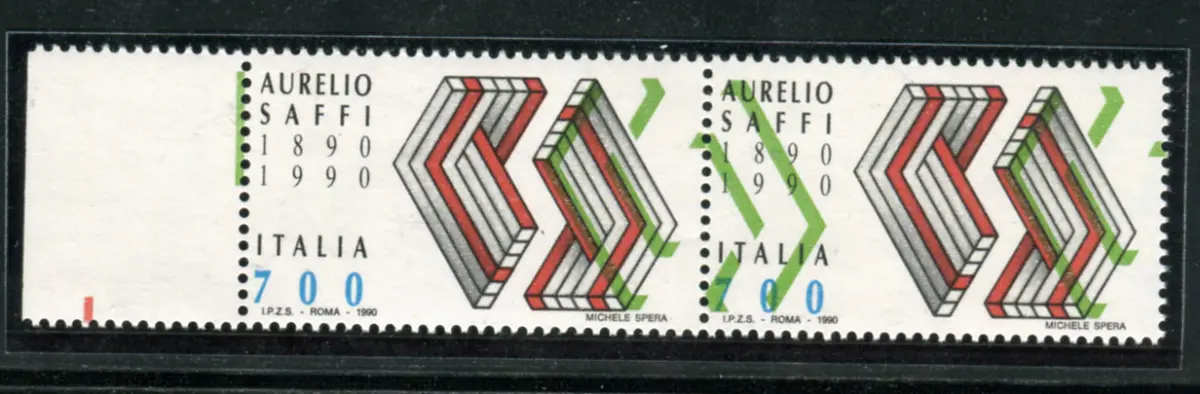 Aurelio Saffi stark verschobene Gründrucksorte Vollgummi - Aurelio Saffi Nr. 1931 horizontales Paar b. von f. mit 12 mm stark nach rechts verschobenem Gründruck. (Sass. spec. n. 1563Aa) - Kat. euro 1.000 Code 709/8