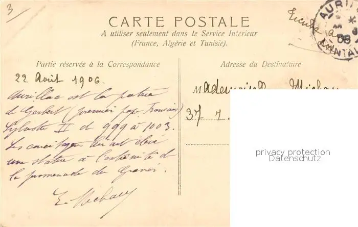 Aurillac Statue de Gerbert Aurillac postalisch gelaufen 1906 Erhaltung siehe scans [WerneD78] WernPID7