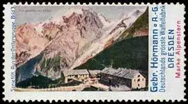 Serie 101, Bild 3, Deutschlands grösste Waffelfabrik, Marke Alpenstern, Berge, Größe/Zustand: 3x6 , guter Zustand, Original alte Reklamemarke die seinerzeit für die Werbung benutzt wurde