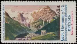 Deutschlands grösste Waffelfabrik, Marke Alpenstern, Berge, Größe/Zustand: 3x5 , guter Zustand, Original alte Reklamemarke die seinerzeit für die Werbung benutzt wurde
