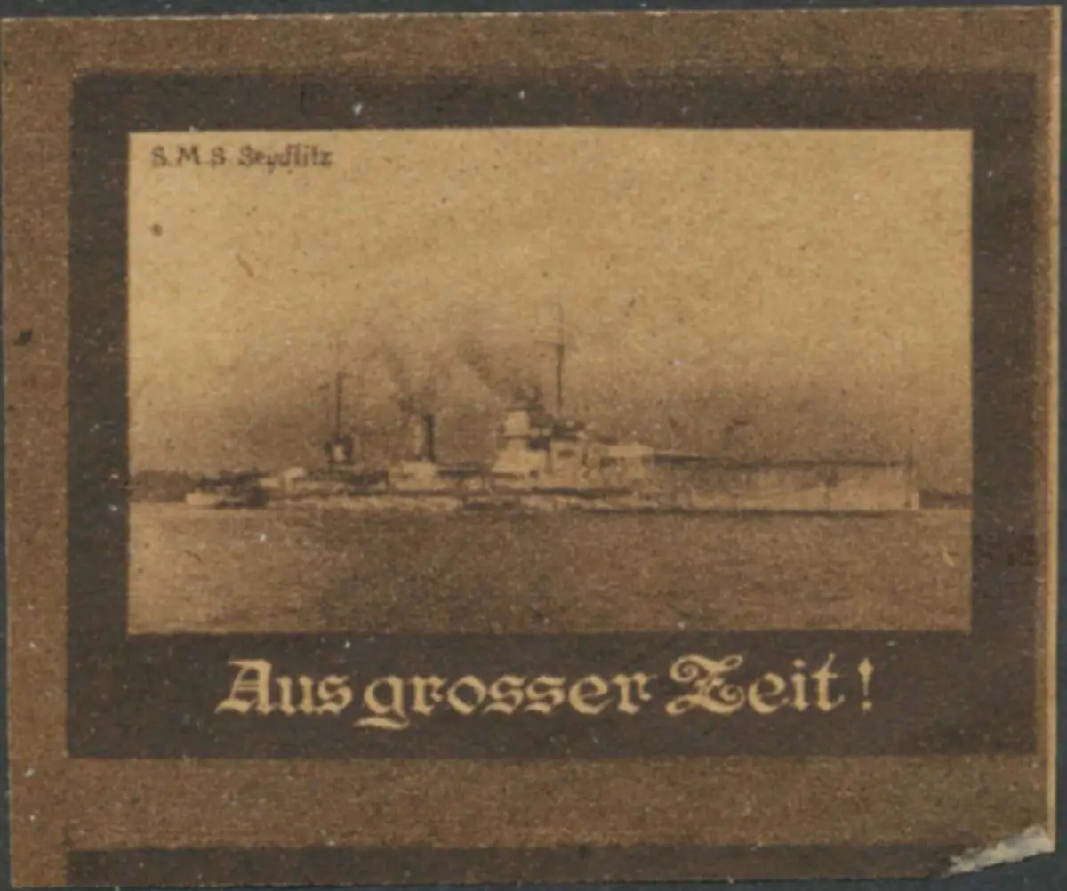 Erster Weltkrieg Propaganda-Marke aus einer Serie von 120 Siegelmarken, Bild 68, Schiff, Marine, Größe/Zustand: 3x4 , beschädigt, Original alte Reklamemarke die seinerzeit für die Werbung benutzt wurde