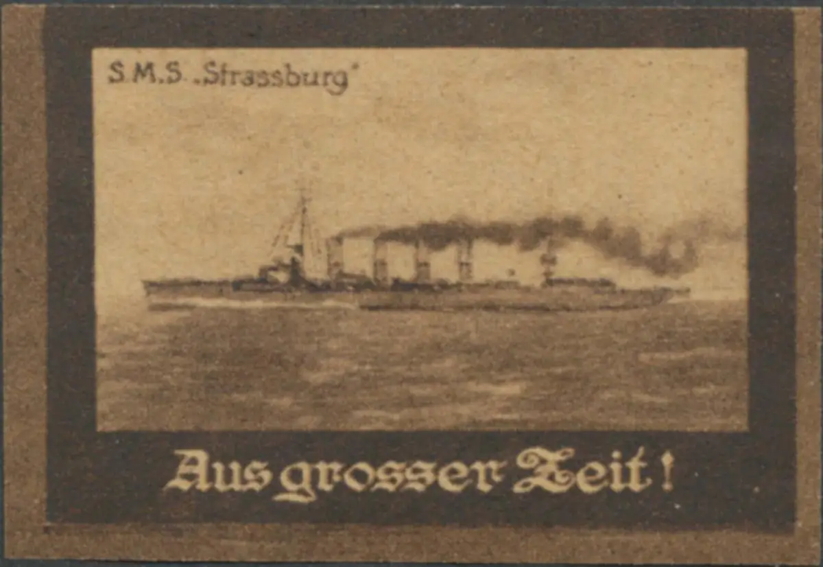 Erster Weltkrieg Propaganda-Marke aus einer Serie von 120 Siegelmarken, Bild 31, Schiff, Größe/Zustand: 3x4 , guter Zustand, Original alte Reklamemarke die seinerzeit für die Werbung benutzt wurde