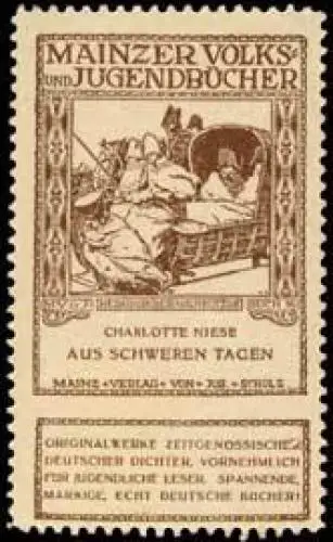 Charlotte Niese, Herausgeber: Wilhelm Kotzde, Reihe: Mainzer Volks- und Jugendbücher, Größe/Zustand: 6x3 , guter Zustand, Original alte Reklamemarke die seinerzeit für die Werbung benutzt wurde