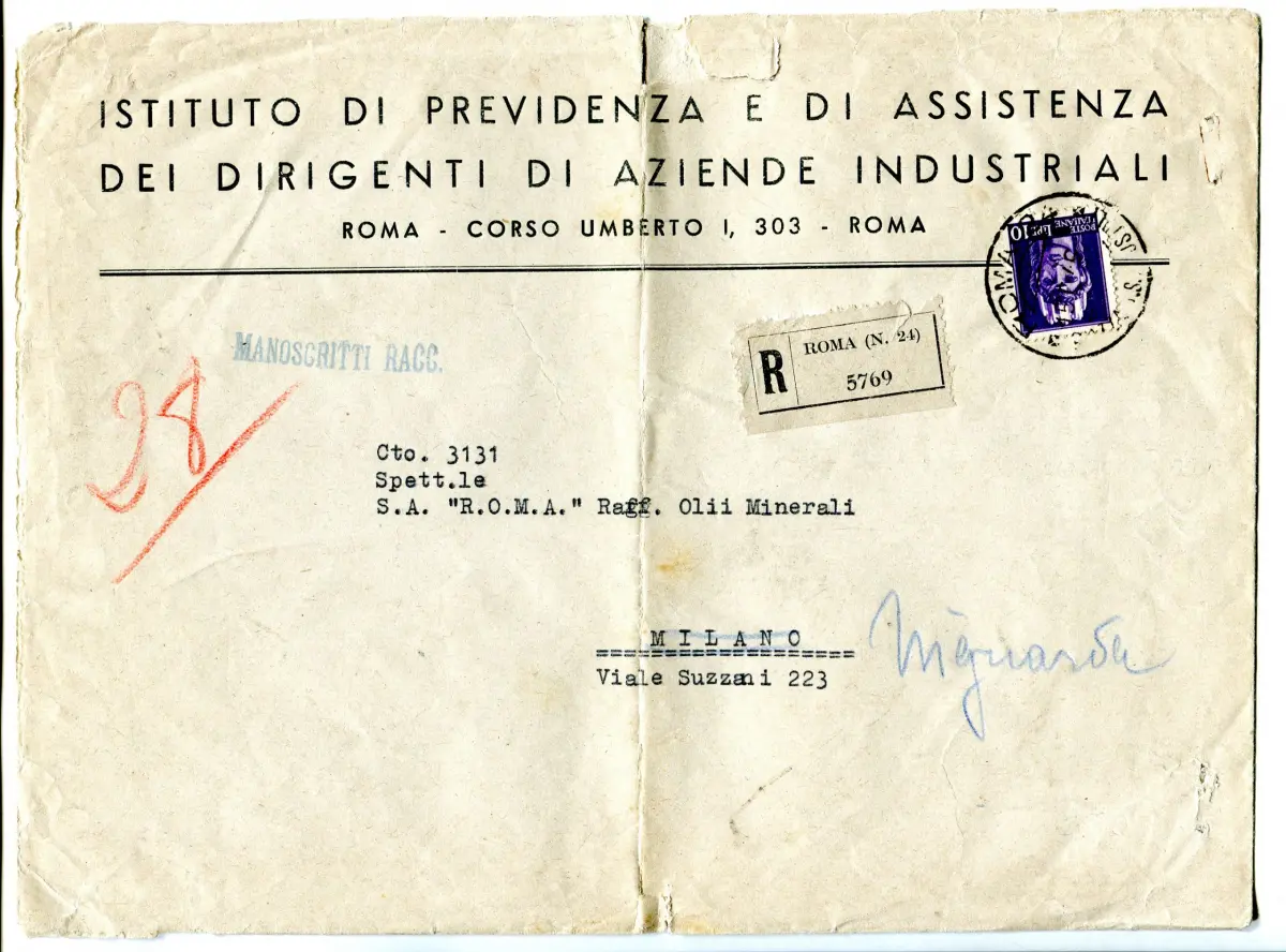 Ausgabe von Novara Lire 10 isoliert auf Umschlag - Ausgabe von Novara Lire 10 Nr. 542 isoliert auf Umschlag (Großformat) Racc. von Rom nach Mailand am 15.6.46 - Umschlag von mittelmäßiger Qualität, aber hochwertiger Einmalgebrauch, im Tarif Manuskripte Cod. 226/13