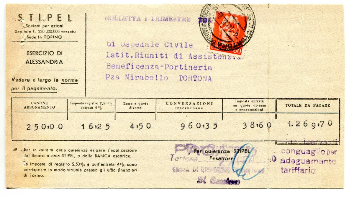Ausgabe von Novara Cent. 60 orange isoliert auf Hinweis Umschlag - Ausgabe von Novara Cent. 60 orange Nr. 539 isoliert auf Ablaufhinweis Telefonrechnung - hochwertige Einmalverwendung - Kat. euro 120 Cod. 225/13
