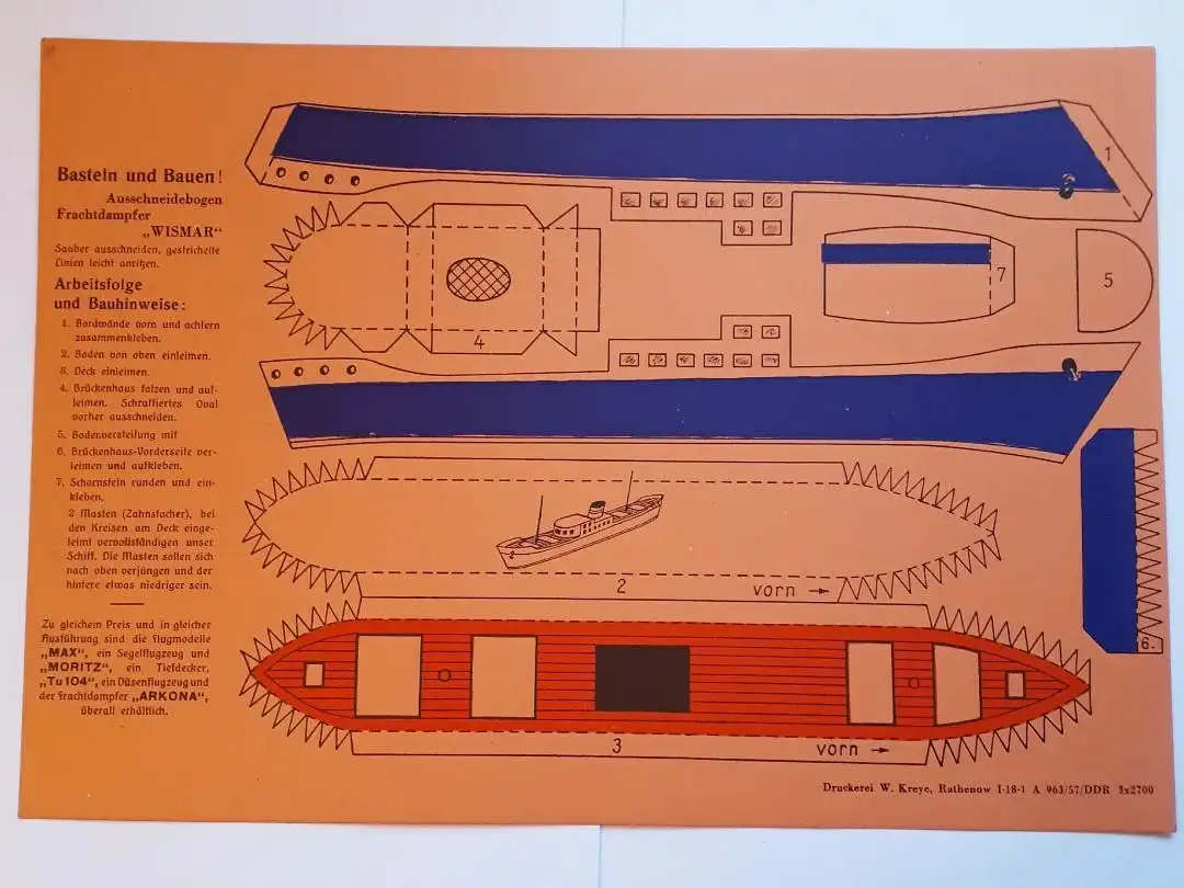 Ausschneidebogen Frachtdampfer Wismar