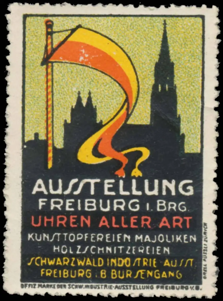 Holzschnitzerei, Schwarzwald Industrie-Ausstellung, Druck: Orell Füssli, Zürich, Größe/Zustand: 5x4 , beschädigt, Original alte Reklamemarke die seinerzeit für die Werbung benutzt wurde