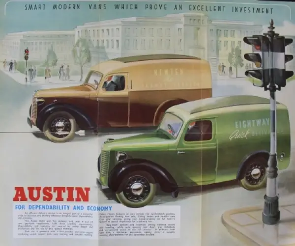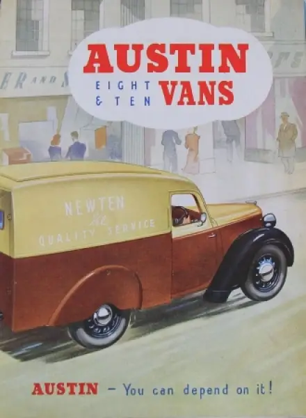 Austin Eight-Ten Vans Modellprogramm 1939 "You can depend on it" Lastwagenprospekt (4099)