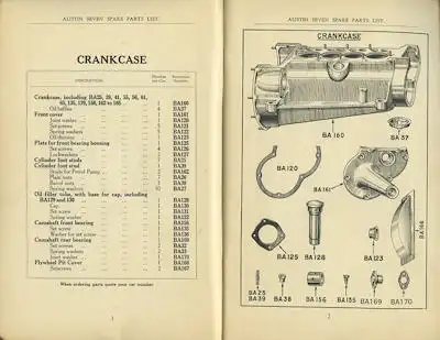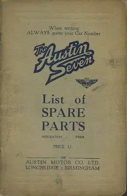 Austin Seven Ersatzteilliste 1933