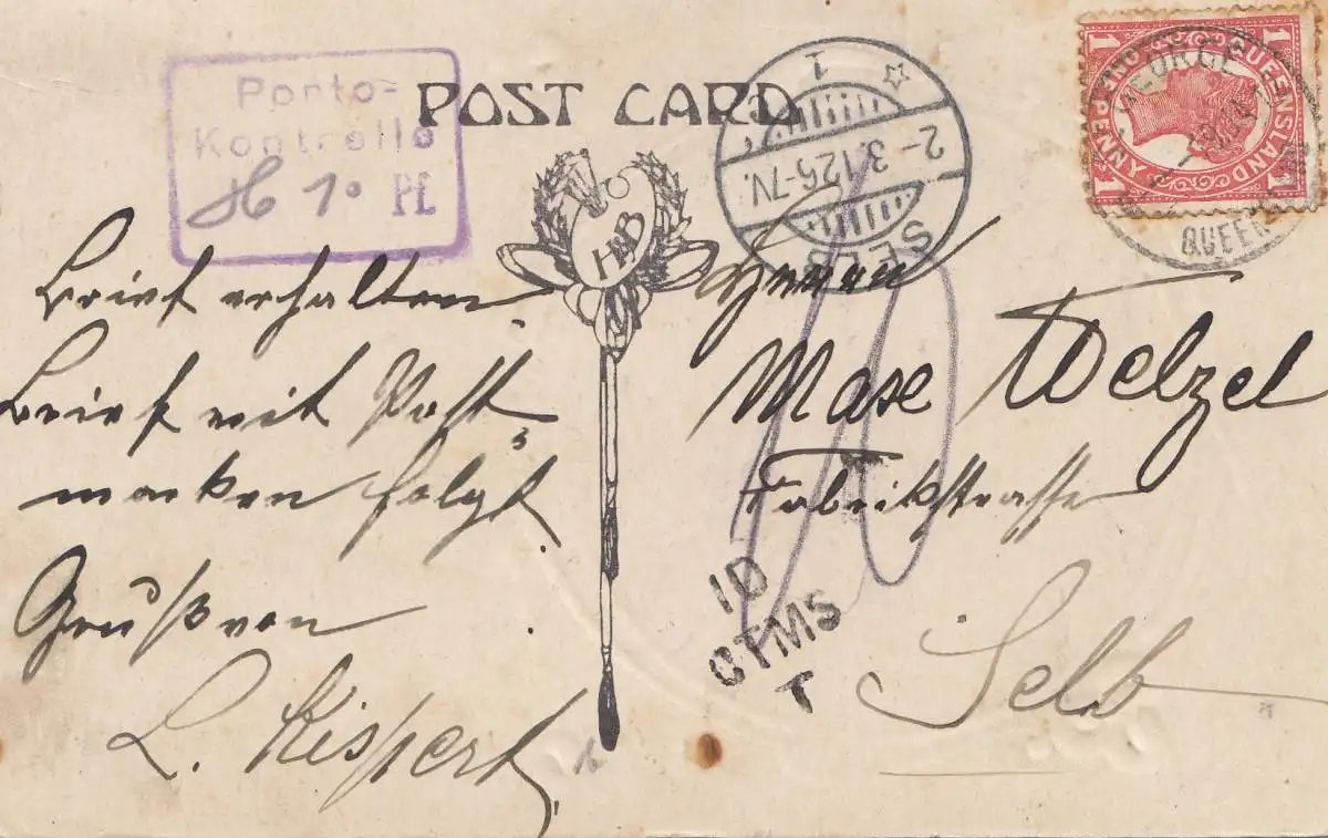 Australia 1926: Queensland / George postcard to Selb, Porto Kontrolle